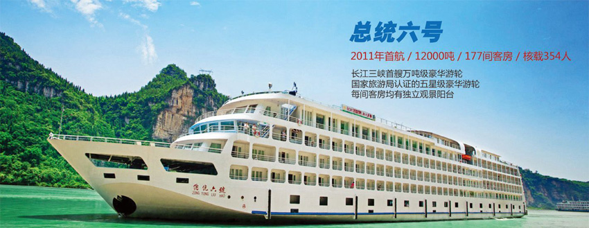 總統(tǒng)六號三峽游船于2011年春季首航,是總統(tǒng)系列游輪中突破傳統(tǒng)內(nèi)河游船硬件與服務(wù)標(biāo)準(zhǔn)而打造的新一代游船。船體彰顯現(xiàn)代功能帶來的現(xiàn)代技術(shù)語言與歐式古典審美情趣為主調(diào)的西方傳統(tǒng)文化特征。