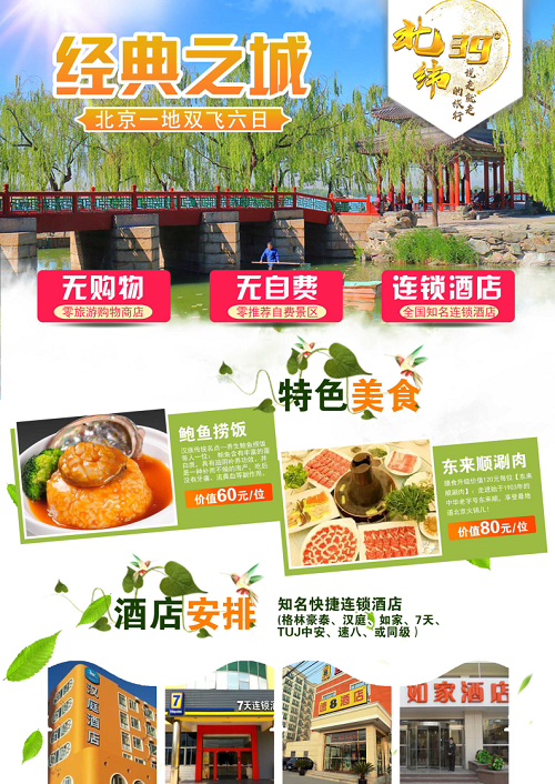 10、【什剎海風(fēng)景區(qū)】?jī)?nèi)有人力三輪車屬于景區(qū)交通未含,奧運(yùn)官方夢(mèng)之隊(duì)大型演出票游客如需請(qǐng)自理(180元)。